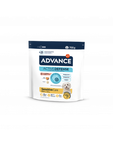Alimento de gama alta especialmente indicado para cães adultos de raça pequena (até 10Kg) com intolerância à proteína da carne e a outros ingredientes frequentemente associados à sensibilidade digestiva: Salmão como fonte de proteína animal: ajuda a reduzir o risco de intolerâncias alimentares e tem uma grande adaptabilidade. Fonte de ácidos gordos ómega 3 e ómega 6 que promovem pelo e pele saudáveis. Nível de proteínas adaptado ao metabolismo dos cães de raça pequena. Croquetes pequenos adaptados ao tamanho da mandíbula.