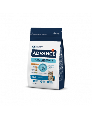 Advance Adult com frango e arroz é um alimento premium que integra os últimos avanços em nutrição para garantir uma boa saúde durante toda a vida do gato. Advance Adult com frango e arroz promove o bom funcionamento do organismo dos gatos, especialmente o sistema imunológico, digestivo e cardiovascular. Advance é um alimento elaborado com os melhores ingredientes, é de fácil digestão e particularmente saboroso. Este alimento Advance não contém corantes nem conservantes. Benefícios do alimento para gatos Advance: REFORÇA O SISTEMA IMUNITÁRIO: um dos principais benefícios da fórmula de Advance é que contém nucleotídeos e antioxidantes para fortalecer o sistema imunológico. ANTI-ENVELHECIMENTO CELULAR (antioxidantes): o oxigénio que o seu gato respira é um componente necessário para viver, mas também é um oxidante potente, que pode danificar as células, e assim, afetar o funcionamento do organismo. Advance inclui uma eficaz combinação de antioxidantes naturais, tais como, vitaminas E e C, bioflavonóides, selénio, zinco, cobre, manganês e taurina que reduzem os efeitos nocivos da oxidação (acumulação de radicais livres) e contribuem para atrasar o envelhecimento celular e fortalecer o sistema imunológico do gato. OPTI-DIGEST (imunoglobulinas): o sistema digestivo é o orgão principal do sistema imunitário que luta contra as agressões externas. Por isso é vital para manter um sistema digestivo saudável e fortalecer o sistema imunitário. Advance incorpora nucleotídeos (percentagens de ADN e ARN), e contém imunoglobulinas para facilitar a renovação da parede intestinal e a eficácia do sistema imunitário, tudo isto permite fortalecer as defesas naturais do gato. INGREDIENTES e BENEFÍCIOS de Advance Adult com frango e arroz: